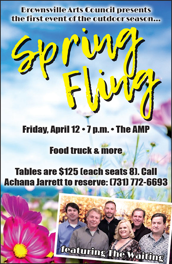 Brownsville Arts Council presents the first event of the outdoor season on Friday, April 12 @ 7:00PM. Live entertainment featuring "The Waiting" plus Food Truck and more. Tables are $125 (each seats 8). To reserve your table or for more information contact Achana Jarret, 772-4883.